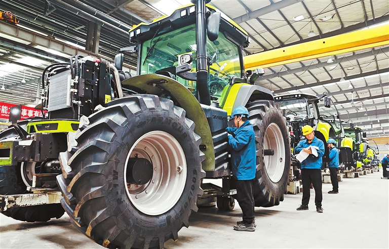 11月3日,中联重科开封工业园大马力拖拉机车间,工人正在赶制订单。园区依托高端制造业产业带的区位优势,加快建设中原特色产业基地步伐,确保农业装备制造业在四季度跑出加速度。记者 聂冬晗 摄